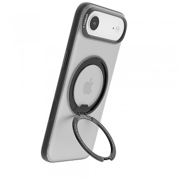 Dominantním prvkem designu je integrovaný černý kroužek Ostand na zadní straně, který slouží jako diskrétní stojánek pro pohodlné sledování obsahu ve vertikální i horizontální poloze. Kroužek je navržen tak, aby byl plně kompatibilní s technologií MagSafe, což umožňuje snadné a bezpečné připevnění MagSafe příslušenství. Kryt je vyroben z prémiových materiálů, včetně odolného polykarbonátu (PC) a flexibilního TPU z Německa, což zaručuje extrémní absorpci nárazů a ochranu na vojenské úrovni (Military Grade).