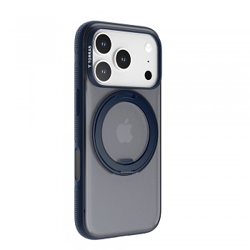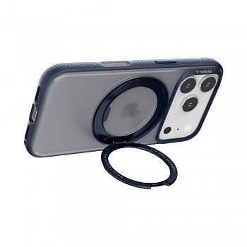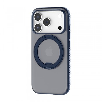 Design krytu se vyznačuje robustním rámem v námořnické modři, který je doplněn průsvitnou zadní stranou, jež decentně odhaluje originální design vašeho iPhonu. Boky krytu jsou opatřeny jemnou texturou pro pevnější a jistější úchop, což minimalizuje riziko vyklouznutí telefonu z ruky. Klíčovým prvkem je integrovaný kruhový stojánek Ostand™ v barvě krytu, který lze snadno vyklopit a použít jako praktický stojánek pro sledování obsahu nebo jako bezpečné poutko pro držení telefonu. Tento stojánek je navíc plně kompatibilní s technologií MagSafe, což zajišťuje bezproblémové používání s MagSafe příslušenstvím. Kryt také disponuje zvýšenými okraji kolem modulu fotoaparátu a displeje, čímž poskytuje dodatečnou ochranu proti poškrábání a nárazům.