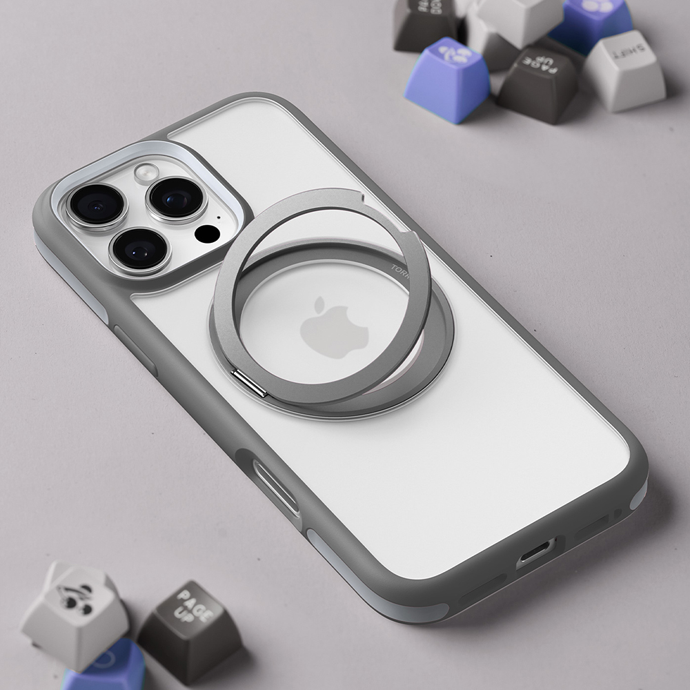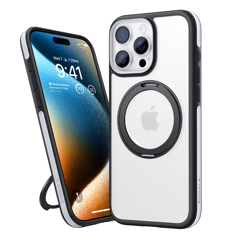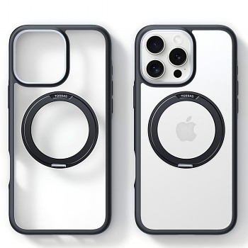 Kryt Torras Ostand R Fusion se vyznačuje průhlednou zadní stranou, která nechává vyniknout originální design vašeho iPhonu, a elegantními černými okraji, které dodávají pouzdru sofistikovaný vzhled. Je vyroben z kombinace odolného polykarbonátu (PC) a flexibilního TPU, což zajišťuje extrémní absorpci nárazů a ochranu na vojenské úrovni (Military Grade). Klíčovým prvkem je integrovaný skládací kroužkový stojánek, který je diskrétně umístěn na zadní straně. Tento stojánek umožňuje horizontální i vertikální sledování obsahu a zároveň slouží jako bezpečný úchop pro pohodlnější manipulaci s telefonem. Kroužek je plně otočný o 360 stupňů a nabízí nastavení v rozsahu 0-120 stupňů. Díky silným magnetům s maximální magnetickou silou 19N je zajištěna plná kompatibilita s technologií MagSafe pro rychlé a stabilní bezdrátové nabíjení a připojení příslušenství.