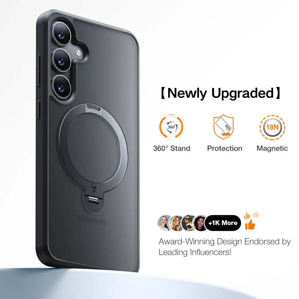 Torras Ostand Spin MagSafe Series Samsung Galaxy S25 černáPředstavujeme Torras Ostand Spin MagSafe Series, prémiový ochranný kryt navržený speciálně pro váš Samsung Galaxy S25. Tento kryt v elegantní černé barvě kombinuje špičkovou ochranu s inovativní funkčností a minimalistickým designem.