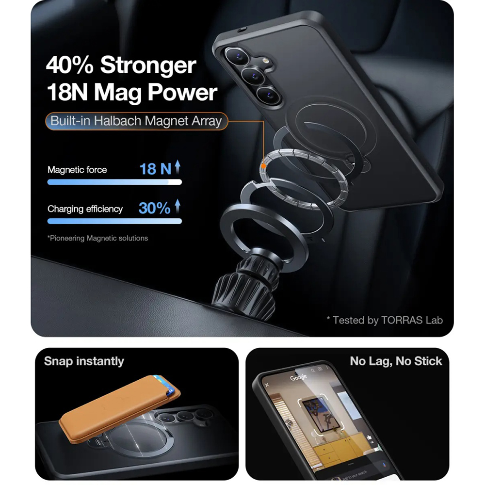 S krytem Torras Ostand Spin MagSafe Series se nemusíte obávat každodenních pádů. Poskytuje 8x vojenskou úroveň ochrany proti pádu (Military Grade) z výšky až 12 stop (přibližně 3,6 metru). Tato robustní ochrana je zajištěna díky 18 okolním vzduchovým polštářkům, které absorbují nárazy a zvyšují odolnost proti otřesům o 40 %. Váš Samsung Galaxy S25 tak zůstane v bezpečí i v náročných podmínkách.