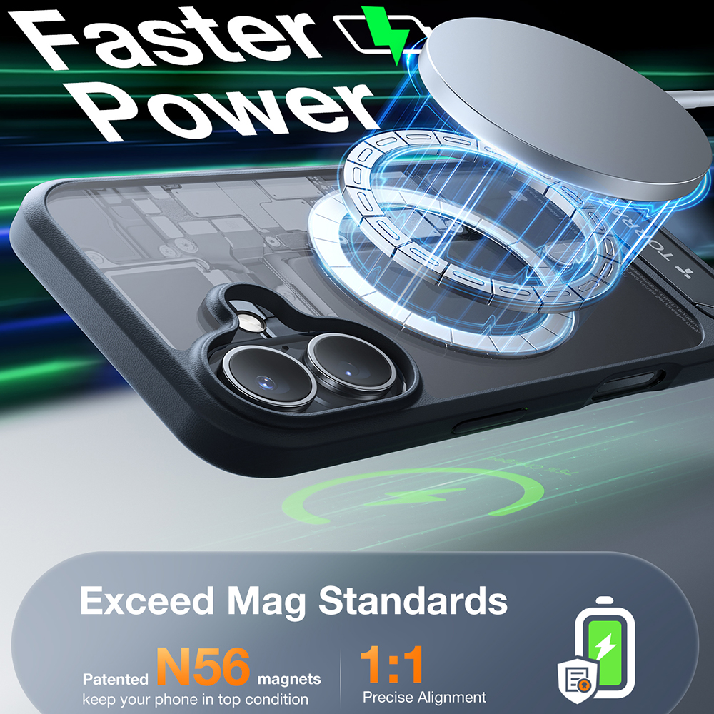 Pouzdro Torras Pstand MagSafe se pyšní elegantním a funkčním designem. Jeho zadní strana je vyrobena z průsvitného materiálu, který decentně odhaluje originální krásu vašeho iPhonu, zatímco robustní černé okraje zajišťují maximální ochranu. Integrovaný MagSafe kroužek je dokonale zarovnán a zajišťuje silné a stabilní magnetické připojení pro veškeré MagSafe příslušenství, a to i na nerovných cestách díky technologii MegaMag™- Boosted Tech a patentovaným N56 magnetům.