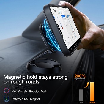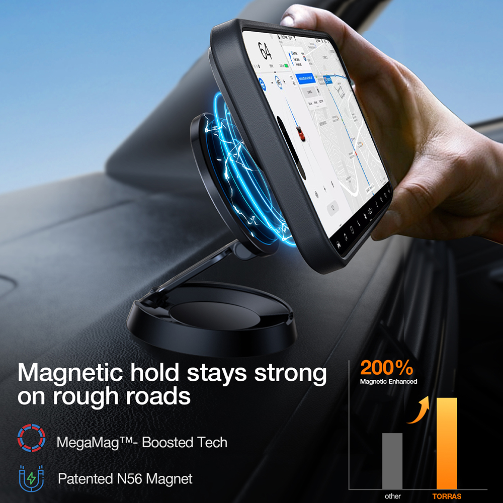 Plná kompatibilita s MagSafe je samozřejmostí. Integrovaný magnetický kroužek zajišťuje silné a stabilní připojení k MagSafe nabíječkám a příslušenství, a to i na nerovných cestách, díky technologii MegaMag™- Boosted Tech s patentovaným magnetem N56.