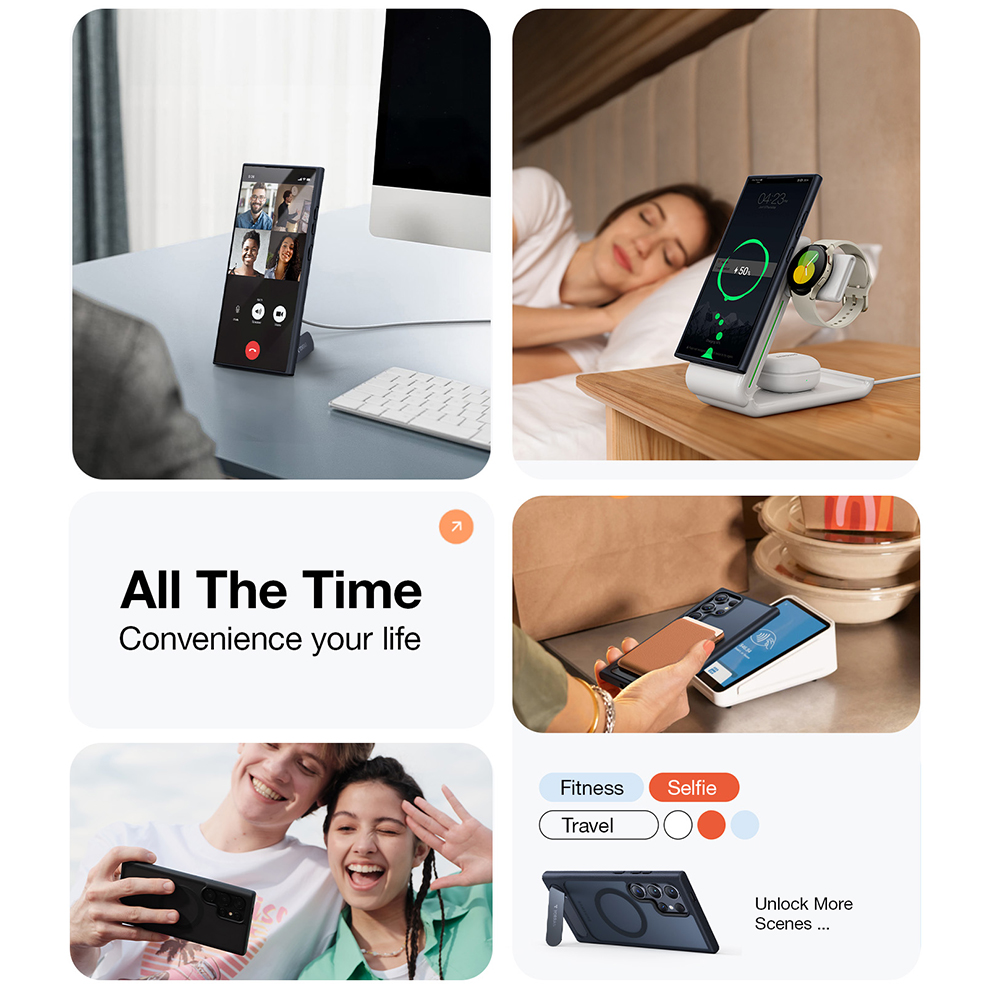 Kryt Torras Pstand MagSafe se pyšní minimalistickým a zároveň vysoce funkčním designem. Jeho poloprůhledná zadní strana v tmavě šedé barvě decentně odhaluje původní design vašeho telefonu, zatímco matný povrch zajišťuje příjemný dotyk a zabraňuje ulpívání otisků prstů. Integrovaný MagSafe kroužek na zadní straně zaručuje plnou kompatibilitu s MagSafe příslušenstvím, což umožňuje rychlé a bezpečné bezdrátové nabíjení a snadné připevnění k MagSafe držákům.