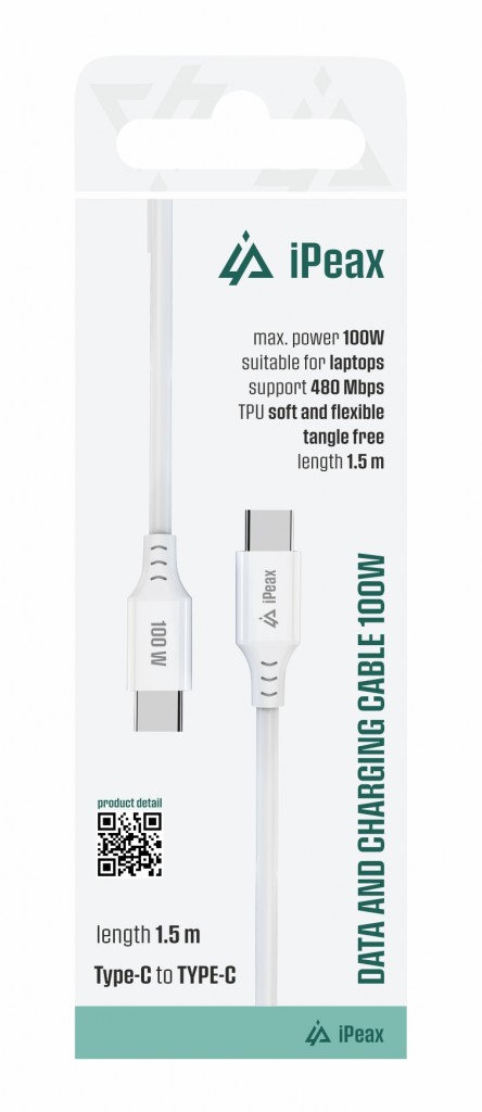 TPU kabel iPeax USB-C - USB-C 1,5m, 5A, 100W bílýObjevte sílu a eleganci s iPEAX USB-C / USB-C kabelem!