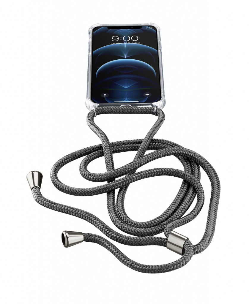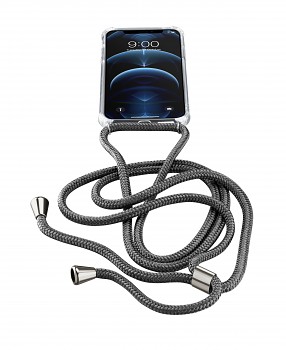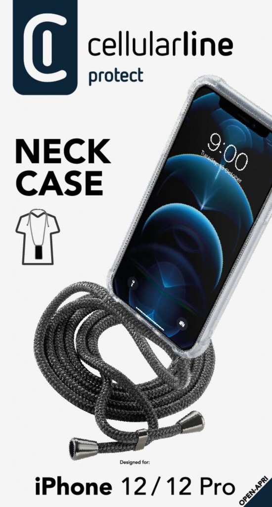 Transparentní zadní kryt Cellularline Neck-Case s černou šňůrkou na krk pro Apple iPhone 12 PRO