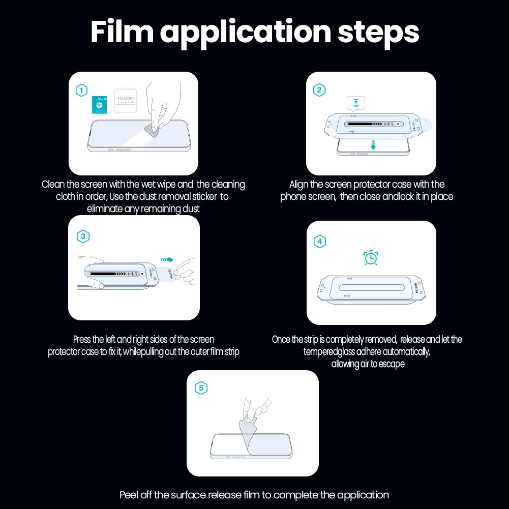Zapomeňte na stres z instalace! S přiloženým aplikátorem je montáž skla hračkou. Tento chytrý nástroj vám pomůže dosáhnout naprosto přesného zarovnání skla s displejem vašeho telefonu, takže se nemusíte obávat vzduchových bublin nebo špatného umístění. Stačí jen umístit aplikátor na displej, přitlačit a voilà – vaše sklo je na místě!