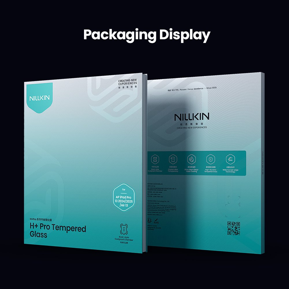 Tvrzené sklo Nillkin 0.4mm H+ pro iPad Air 13 / Pro 13 (2024/2025) s aplikátoremObrovský čirý skleněný panel chránící tablet se pyšní hladkými zaoblenými hranami, které jsou vhodné pro kryty.