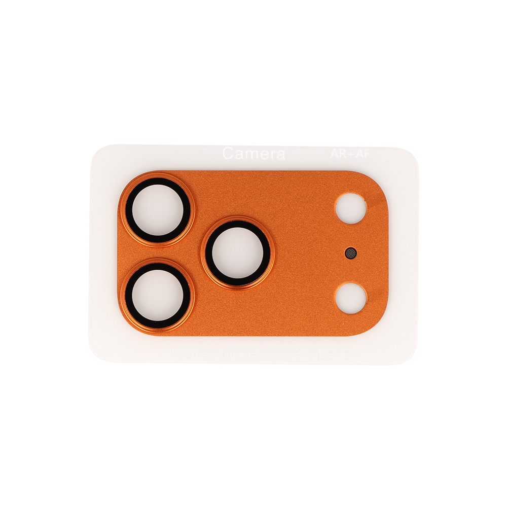 Produkt se skládá z precizně zpracovaného kovového rámečku v matně oranžové barvě, který přesně kopíruje tvar modulu fotoaparátu iPhonu 17 Pro. Rámeček obsahuje tři samostatné otvory pro jednotlivé objektivy, jeden pro blesk a další pro senzory. Každý objektiv je chráněn samostatným tvrzeným sklem. Díky přesným výřezům a samonaváděcí instalaci sklo dokonale přilne bez vzduchových bublin a působí jako nedílná součást telefonu.
