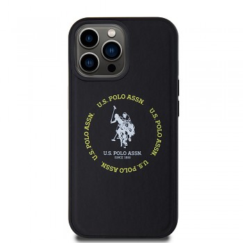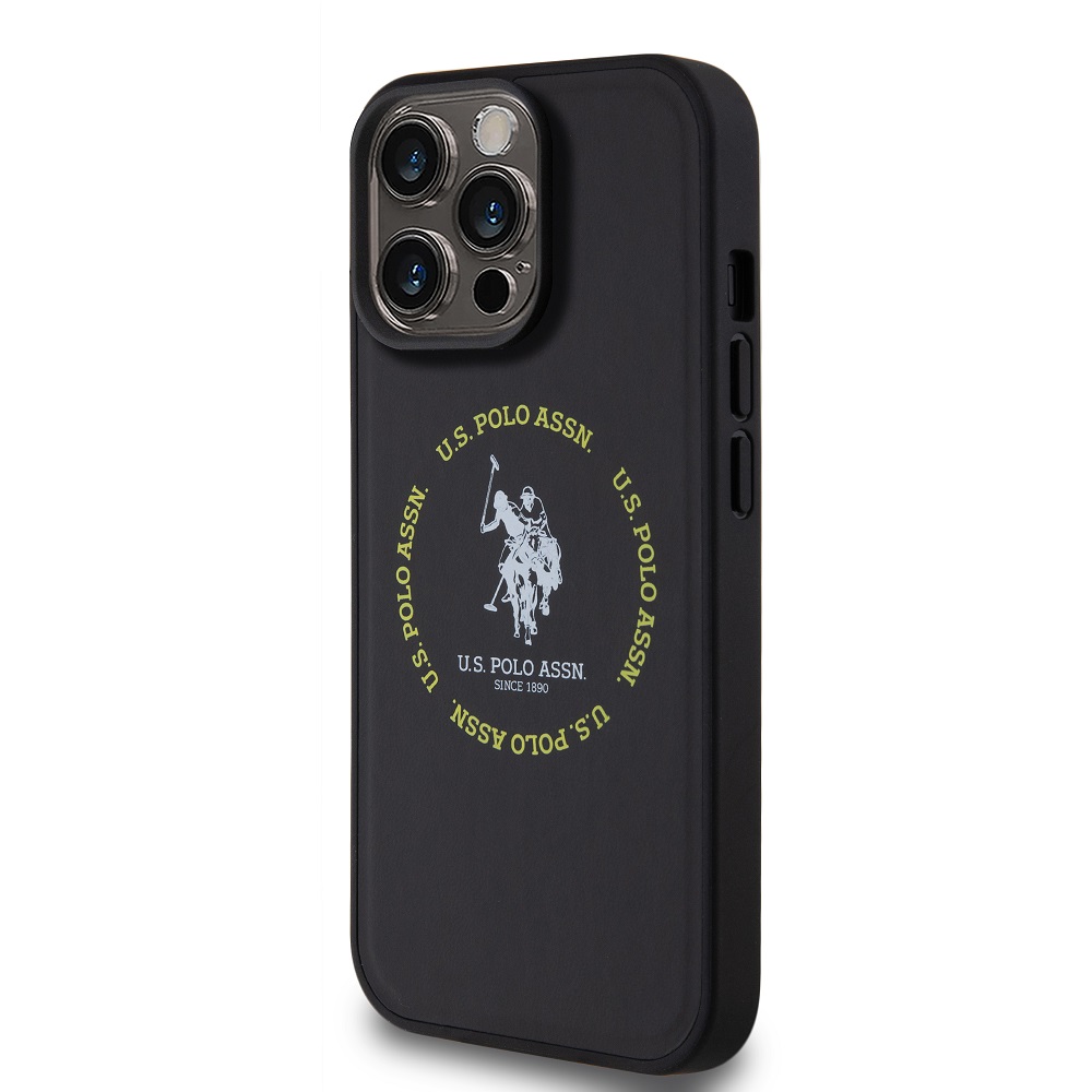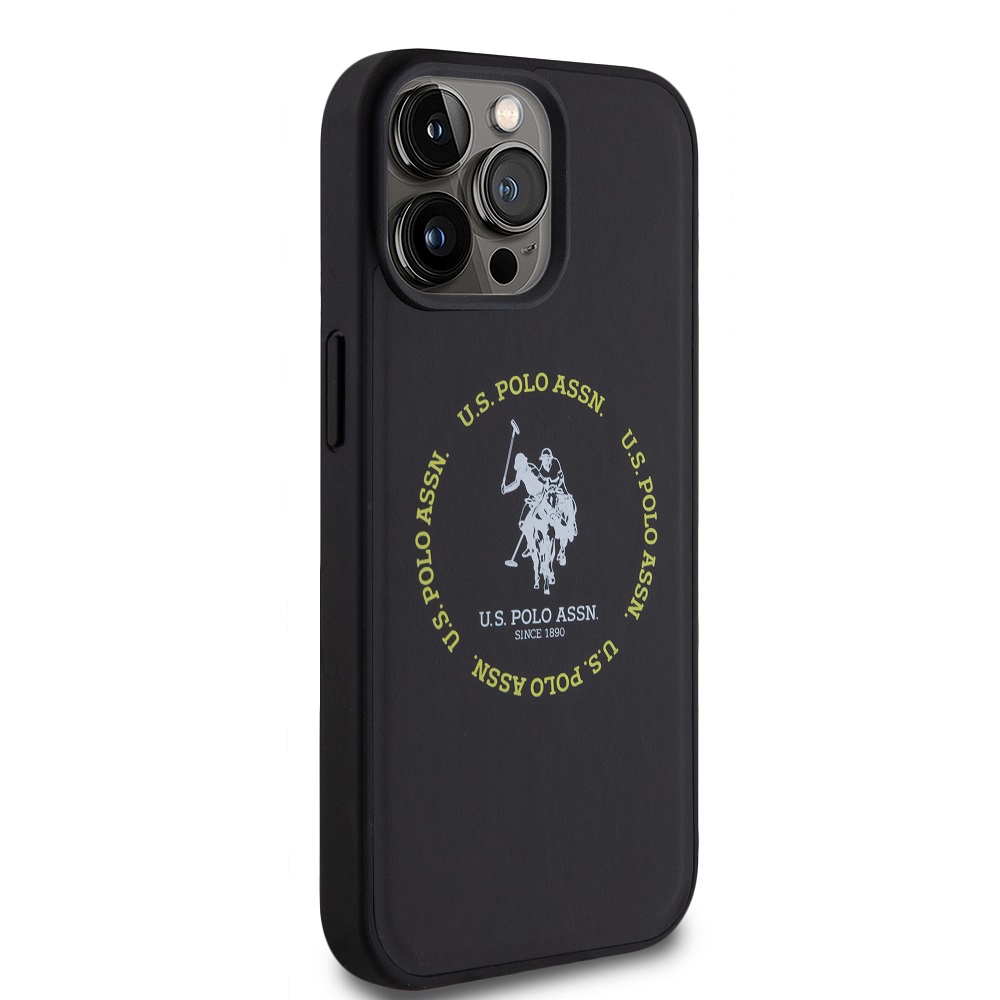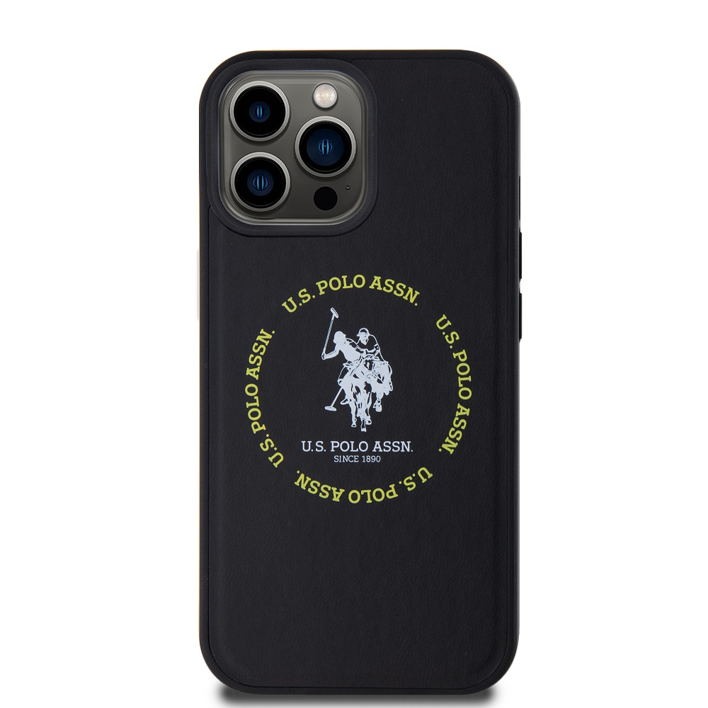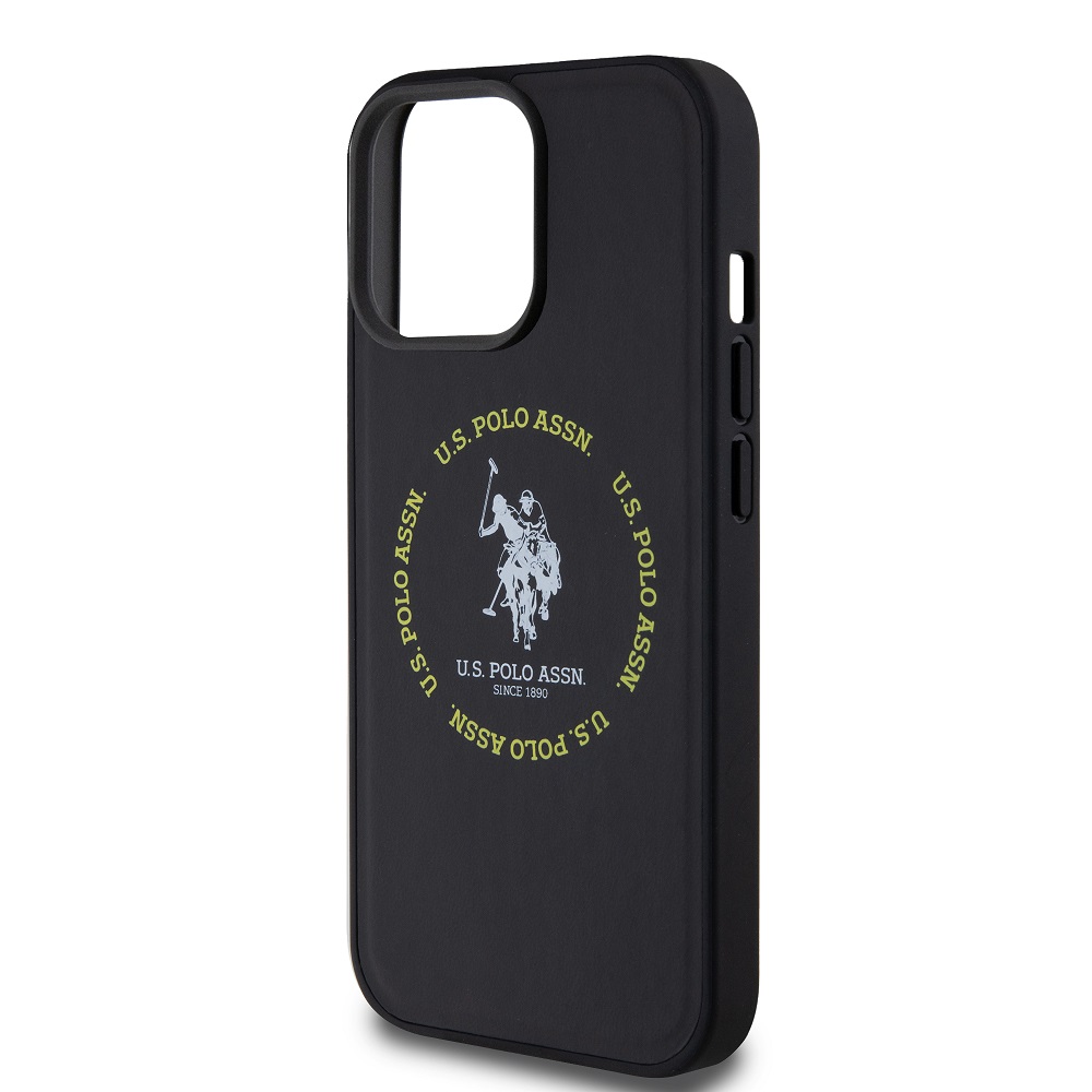 U.S. Polo PU Leather Printed Round Double Horse MagSafe Zadní Kryt pro iPhone 15 Pro Black