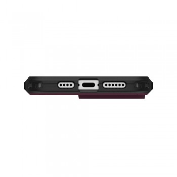 Kryt UAG Civilian MagSafe v barvě bordeaux se pyšní štíhlým a moderním designem, který je charakteristický pro řadu Civilian. Jeho povrch je vyveden v matném, hladkém provedení v sytém odstínu bordeaux, který dodává telefonu nádech luxusu a elegance. Design je doplněn o decentní, ale funkční geometrické linie a prolisy, které nejen vizuálně obohacují vzhled, ale také zlepšují úchop. Černé, mírně zvýšené okraje zajišťují maximální ochranu displeje a fotoaparátu před poškrábáním a nárazy. Na zadní straně je vertikálně umístěno decentní logo "URBAN ARMOR GEAR", které podtrhuje originalitu a kvalitu značky. Integrovaná podpora MagSafe zajišťuje bezproblémové připojení veškerého MagSafe příslušenství a rychlé bezdrátové nabíjení.