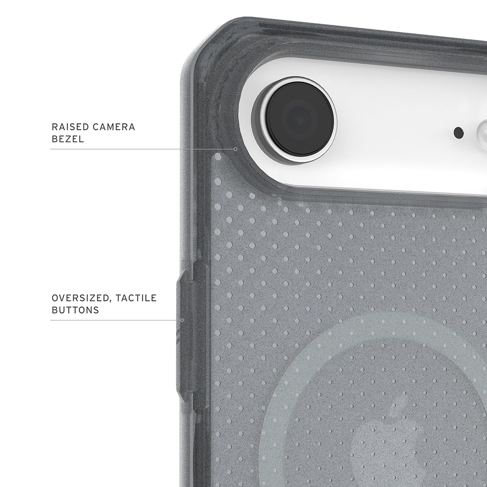 Kryt UAG Dot MagSafe pro iPhone 17 Air v popelavé barvě je ztělesněním moderního a funkčního designu. Jeho zadní strana je opatřena charakteristickým jemným tečkovaným vzorem, který dodává krytu unikátní texturu a zároveň umožňuje decentní průsvitnost. Integrovaný MagSafe modul zajišťuje bezproblémové a pevné připojení veškerého MagSafe příslušenství, od bezdrátových nabíječek po peněženky.
