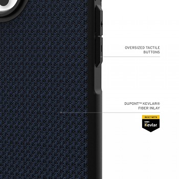 Kryt Metropolis LT Magsafe se pyšní charakteristickým industriálním designem, který je pro UAG tak typický. Zadní strana je opatřena výraznou texturou z Kevlaru v sytě modré barvě Mallard, která nejen skvěle vypadá, ale také poskytuje zvýšenou odolnost proti poškrábání a příjemný úchop. Robustní černé okraje a zesílené rohy jsou vyrobeny z kombinace tvrdého polykarbonátu a měkkého TPU, což zajišťuje maximální absorpci nárazů. Přesné výřezy pro fotoaparát a porty, spolu s nadrozměrnými hmatovými tlačítky, zaručují bezproblémové používání všech funkcí telefonu. I přes svou robustní konstrukci je pouzdro překvapivě lehké a zachovává si štíhlý profil.