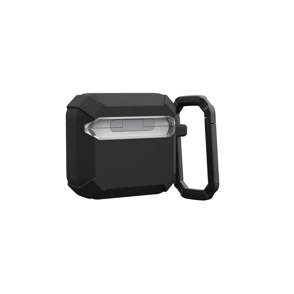 Pouzdro UAG Plasma Series se vyznačuje svým charakteristickým dvoutónovým designem. Střední část je průhledná, což umožňuje vyniknout originálnímu vzhledu nabíjecího pouzdra AirPods a zároveň vidět stavovou LED diodu. Okraje pouzdra jsou tvořeny odolným černým materiálem s výraznou texturou a úhlovými liniemi, které dodávají pouzdru industriální a zároveň elegantní vzhled. Celkový design je nejen vizuálně atraktivní, ale především funkční, navržený pro zvýšenou odolnost proti nárazům a pádům. Součástí balení je také praktická karabina, která umožňuje snadné připevnění pouzdra k batohu, opasku nebo klíčům, čímž zajišťuje, že budete mít svá sluchátka vždy po ruce a v bezpečí.
