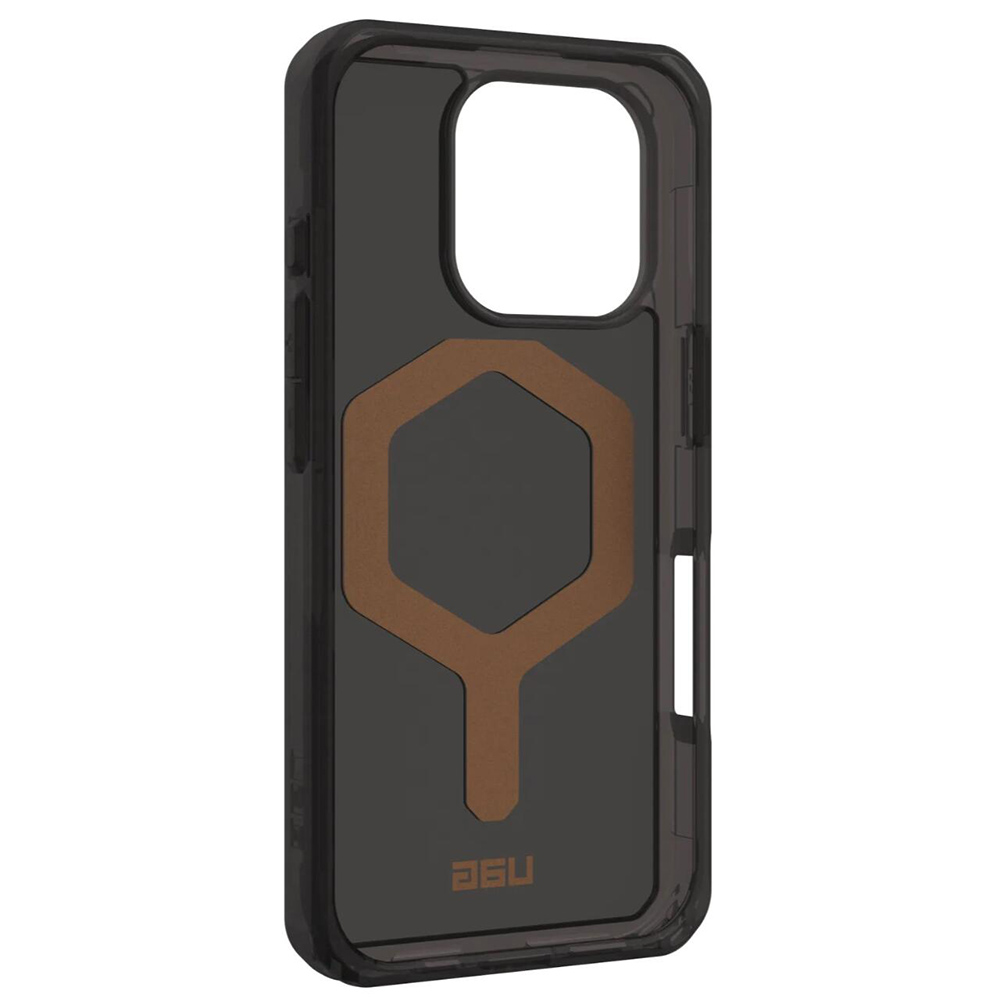 Pouzdro UAG Plyo MagSafe se vyznačuje průhledným designem s jemným kouřovým odstínem, který nechává vyniknout originální krásu vašeho iPhone 16 Pro Max. Klíčovým prvkem je integrovaný MagSafe modul, zvýrazněný výrazným bronzovým šestiúhelníkovým tvarem, který zajišťuje perfektní kompatibilitu s MagSafe příslušenstvím a bezdrátovým nabíjením. Kryt je vyroben z kombinace tvrdého polykarbonátu a měkkého TPU jádra, což zaručuje vynikající absorpci nárazů a ochranu proti pádům. Přestože je robustní, zůstává překvapivě lehký a nezatěžuje telefon. Precizní výřezy pro porty a nadrozměrná hmatová tlačítka zajišťují snadné ovládání a plnou funkčnost zařízení. Zvýšené okraje kolem displeje a fotoaparátu poskytují dodatečnou ochranu proti poškrábání.
