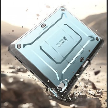 Každý roh pouzdra je osazen čtyřnásobným dutým tlumením, které efektivně rozptyluje energii nárazu a chrání tak tablet před poškozením při pádech. Zvýšené okraje kolem fotoaparátu, o 5 mm vyšší než samotný objektiv, poskytují dodatečnou ochranu proti poškrábání a nárazům, když tablet leží na rovném povrchu. Texturované boky pouzdra zajišťují bezpečný úchop a minimalizují riziko vyklouznutí z ruky.