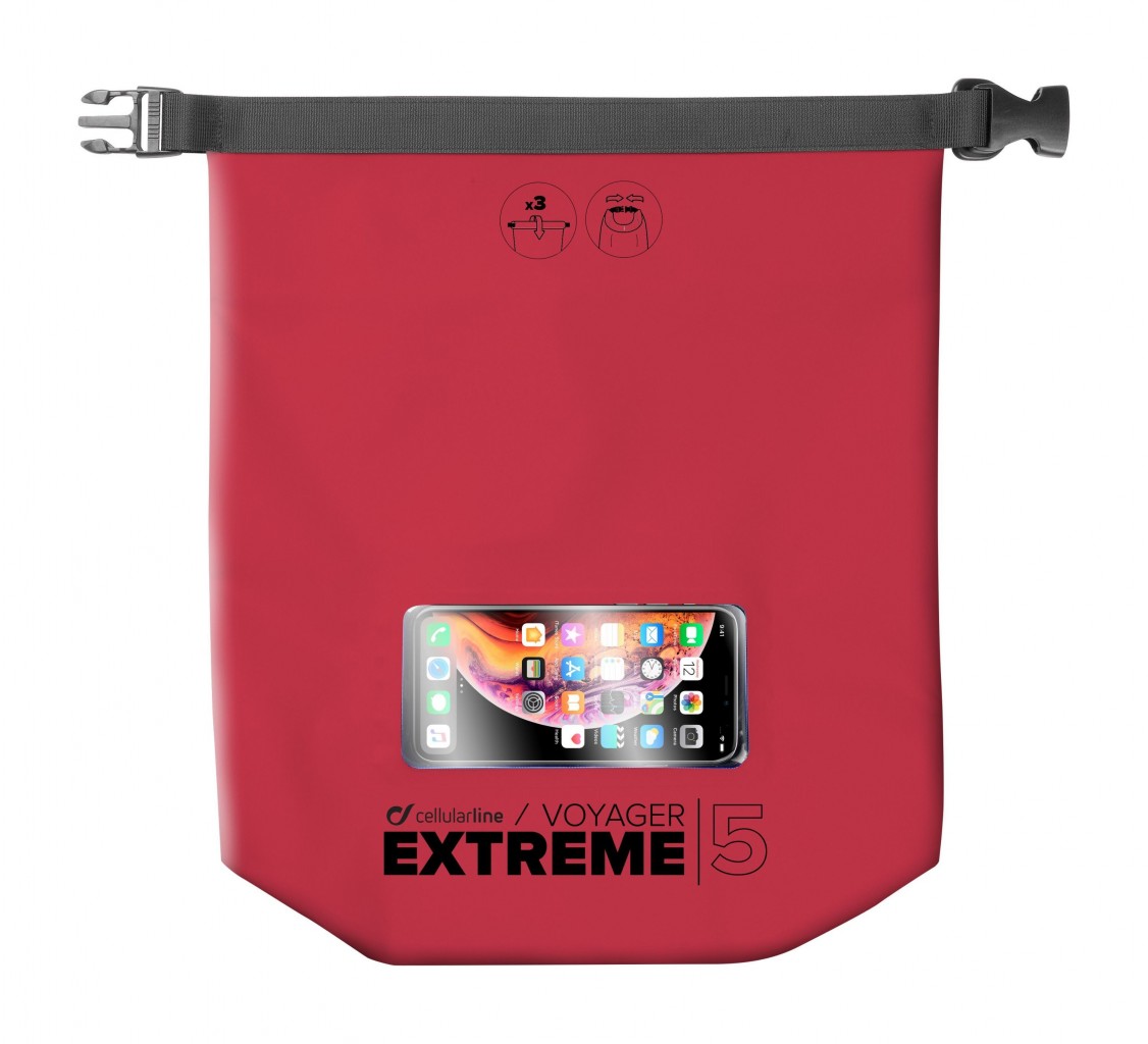 Vodotěsný vak s kapsou na mobilní telefon Cellularline Voyager Extreme, 5l, červený