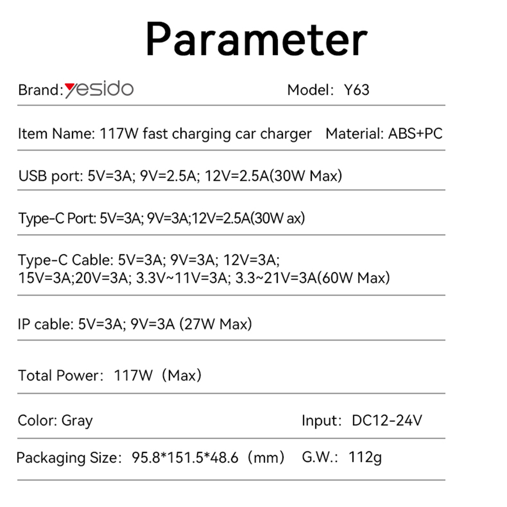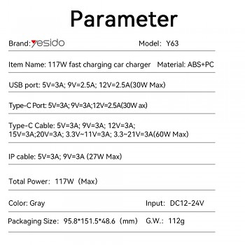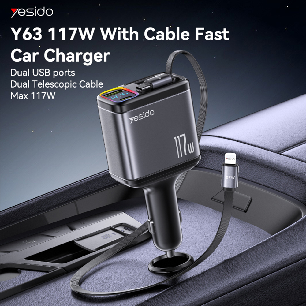 Yesido 4v1 nabíječka do auta Y63 s 2x zatahovacím kabelem LED světlem 117W šedáPrávě probíhá akce, kdy je dopravné od dvou kusů zboží v objednávce zdarma.