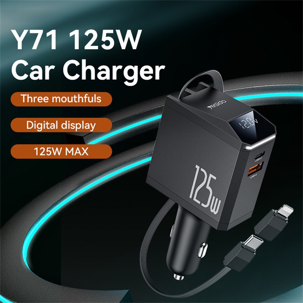 Yesido 4v1 nabíječka do auta Y71 s USB-C kabelem Lightning adaptérem 125W černáPrávě probíhá akce, kdy je dopravné od dvou kusů zboží v objednávce zdarma.