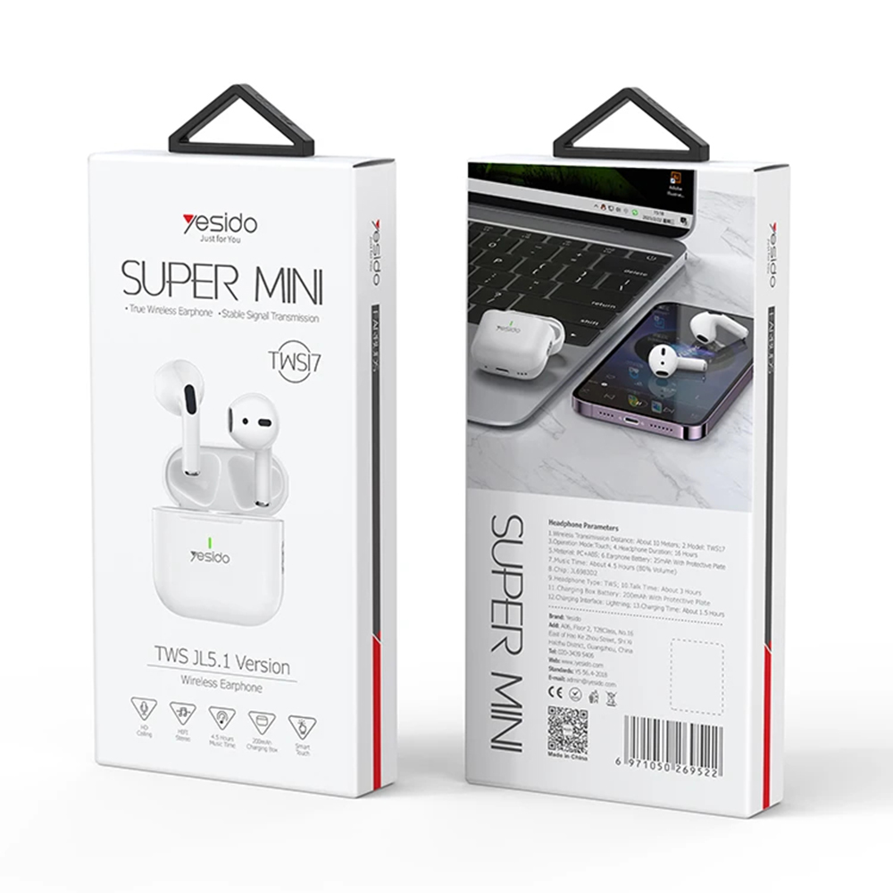 Yesido bezdrátová sluchátka TWS17 Bluetooth V5.1 bíláPonořte se do světa křišťálově čistého zvuku s bezdrátovými sluchátky Yesido TWS17. Tato stylová sluchátka v elegantní bílé barvě jsou navržena tak, aby vám poskytla maximální svobodu a pohodlí při poslechu vaší oblíbené hudby, podcastů nebo při telefonování.