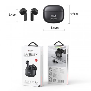 Sluchátka Yesido TWS19 se pyšní moderním a minimalistickým designem. Jejich černé provedení dodává punc elegance a snadno se sladí s jakýmkoli stylem. Díky ergonomickému tvaru a nízké hmotnosti perfektně padnou do uší a zajišťují pohodlí i při dlouhodobém nošení. Kompaktní nabíjecí pouzdro s rozměry přibližně 5,6 cm na šířku a 4,9 cm na výšku je ideální pro nošení v kapse či tašce. Samotná sluchátka mají délku 3,4 cm. Pouzdro je navíc vybaveno praktickým digitálním displejem, který přehledně zobrazuje aktuální stav nabití baterie.
