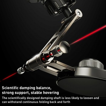 Teleskopické rameno z odolné slitiny zinku umožňuje snadné nastavení délky a úhlu, což zaručuje optimální pozorovací úhel pro každého řidiče. Díky univerzálnímu otočnému kloubu s 360° rotací a možnosti nastavení v rozsahu 270° můžete telefon polohovat přesně podle svých potřeb, a to jak dopředu, tak dozadu.