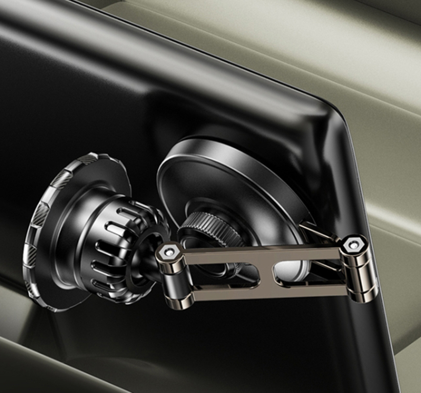 Základna držáku využívá silnou přísavku s pokročilou nano-adhezivní vrstvou, která je speciálně vyvinuta pro automobilové interiéry. Tato technologie zajišťuje extrémně pevné přilnutí k palubní desce bez zanechání stop a je odolná vůči vysokým teplotám. Vědecky navržený tlumicí mechanismus ramene pak garantuje stabilní podporu a zabraňuje uvolnění i při opakovaném skládání a rozkládání.