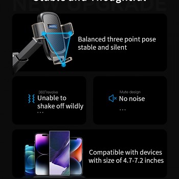 Držák Yesido C262 se pyšní elegantním a minimalistickým designem v matně černé barvě, který se dokonale hodí do každého moderního automobilu. Jeho konstrukce je navržena tak, aby byla diskrétní a zároveň maximálně efektivní. Díky gravitačnímu mechanismu je vkládání a vyjímání telefonu mimořádně jednoduché a rychlé – stačí telefon vložit a jeho vlastní váha automaticky sevře boční ramena, čímž zajistí pevné a stabilní uchycení. Nemusíte se obávat složité manipulace ani během jízdy. Držák je navržen pro montáž na palubní desku nebo čelní sklo, což umožňuje flexibilní umístění podle vašich preferencí a zajišťuje optimální výhled na displej telefonu. Promyšlená konstrukce navíc umožňuje pohodlné nabíjení telefonu, i když je upevněn v držáku.