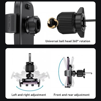 Držák Yesido C241 se pyšní moderním a minimalistickým designem v elegantní černé barvě, která se dokonale sladí s interiérem každého vozu. Zadní strana držáku je opatřena jemnou texturou, která dodává produktu prémiový vzhled. Kompaktní rozměry zajišťují, že držák nebude bránit ve výhledu ani narušovat estetiku palubní desky.