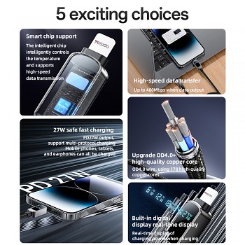 Yesido Data Cable CA180 Super rychlé nabíjení s displejem Type-C 1.2m černáPředstavujeme Yesido datový kabel CA180, který kombinuje špičkový výkon, inovativní technologie a elegantní design pro vaše mobilní zařízení. Tento kabel je navržen pro uživatele, kteří požadují maximální rychlost nabíjení a spolehlivý přenos dat s přidanou hodnotou v podobě inteligentního digitálního displeje.