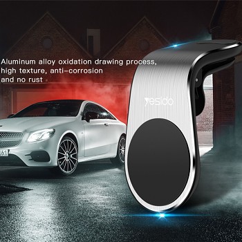 Držák Yesido C64 se pyšní moderním a minimalistickým designem v elegantní černé barvě. Jeho tělo je vyrobeno z kvalitní hliníkové slitiny s procesem oxidace a kartáčovaného povrchu, což mu dodává vysokou texturu a zároveň zajišťuje odolnost proti korozi a rzi. Díky svému zakřivenému tvaru a kompaktním rozměrům se držák dokonale integruje do interiéru vašeho vozu. Černá magnetická plocha je elegantně doplněna stříbrným lemem, který podtrhuje jeho prémiový vzhled.