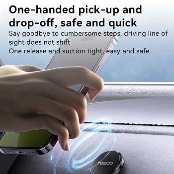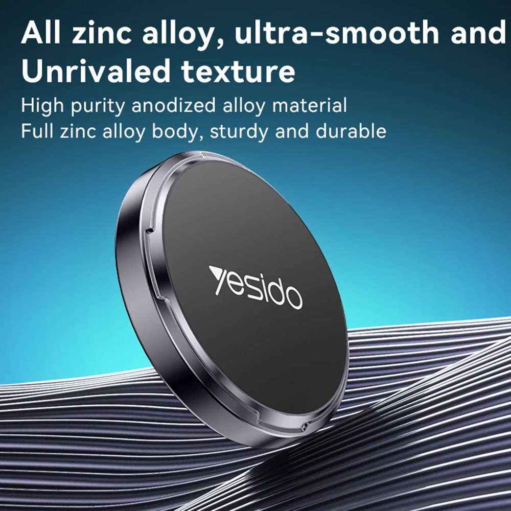 Držák Yesido C211 se pyšní moderním a diskrétním vzhledem. Jeho kruhový tvar a elegantní černé provedení s jemným kovovým lemem se dokonale hodí do interiéru každého automobilu. Na čelní straně je decentně umístěno logo značky Yesido, které podtrhuje jeho prémiový charakter. Díky svým kompaktním rozměrům držák nenarušuje výhled a stává se téměř neviditelnou součástí palubní desky, dokud jej nepotřebujete.