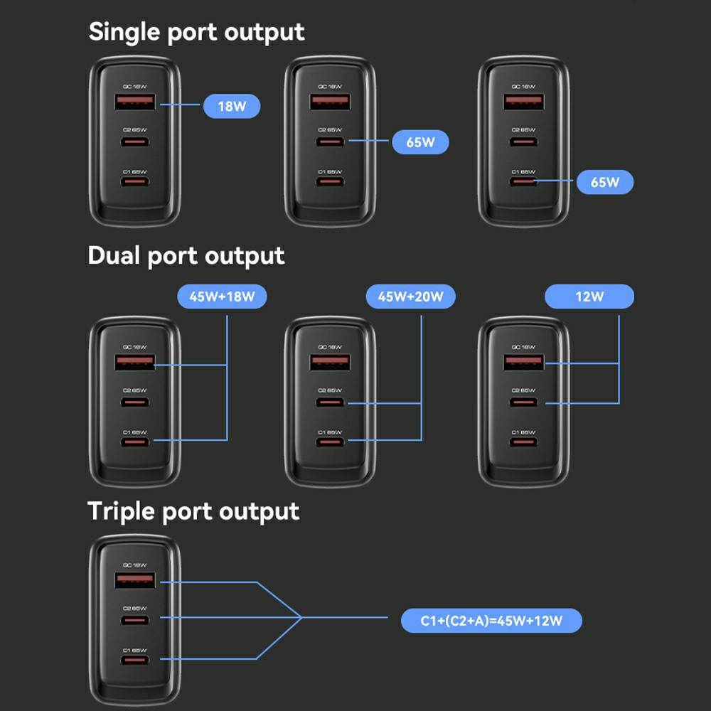 Tato nabíječka je vybavena třemi výstupními porty pro maximální flexibilitu: dvěma porty Type-C a jedním portem USB-A. S celkovým výkonem 65W dokáže nabíjet více zařízení současně s optimální rychlostí. Ať už potřebujete dobít chytrý telefon, tablet, nebo dokonce notebook, Yesido YC144 je připravena splnit vaše požadavky na rychlé nabíjení.