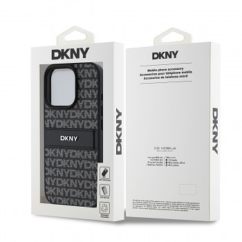 Design krytu je moderní a elegantní, s opakujícím se vzorem loga "DKNY" po celé zadní straně a výrazným pruhem s ikonickým logem. Tento kryt je ideální volbou pro ty, kteří si v módě cení: