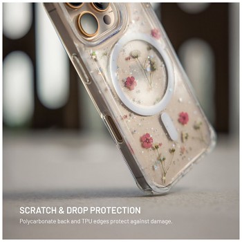 Kryt FIXED MagBloom není jen krásný, ale také velmi funkční. Je vyroben z tvrzeného polykarbonátu, který chrání před poškrábáním, a boky z pružného TPU tlumí nárazy a pády. Díky tomu získáte spolehlivou ochranu telefonu před nárazy, poškrábáním a nečistotami. Lehká zvýšená hrana kolem fotoaparátu a displeje zajišťuje, že váš telefon zůstane v bezpečí i při položení na stůl.