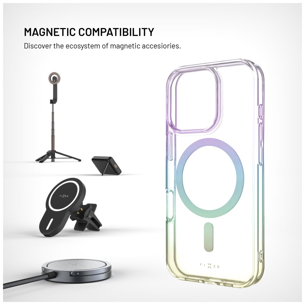 Kryt FIXED MagRainbow je vyroben z tvrzeného polykarbonátu, který zajišťuje vynikající ochranu před poškrábáním. Boky krytu jsou z pružného TPU, které efektivně tlumí nárazy a pády, takže se nemusíte bát, že by váš telefon utrpěl újmu při každodenním používání. Duhový efekt na zadní straně dodává krytu nádech elegance a originality, což z něj činí skvělou volbu pro každého, kdo chce být in.