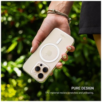 Kryt FIXED MagShell je vyroben z transparentního materiálu, který se pyšní svou odolností vůči žloutnutí. Tento design umožňuje, aby se krásné linie vašeho iPhonu 17 dostaly na povrch, zatímco lehce zvýšené hrany kolem fotoaparátu a displeje chrání před poškrábáním. Vzory a detaily, které se odrážejí v krytu, vytvářejí jedinečný vzhled, který osloví každého milovníka moderní technologie.
