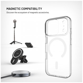Na první pohled vás zaujme jeho transparentní design, který umožňuje vyniknout krásným liniím vašeho iPhonu. Kryt je navíc vybaven integrovanými MagSafe magnety, které zajišťují přesné a stabilní uchycení k nabíječkám a dalšímu MagSafe příslušenství. Ať už se rozhodnete pro bezdrátové nabíjení nebo používání různých doplňků, s tímto krytem budete mít vždy jistotu, že váš telefon je v bezpečí.
