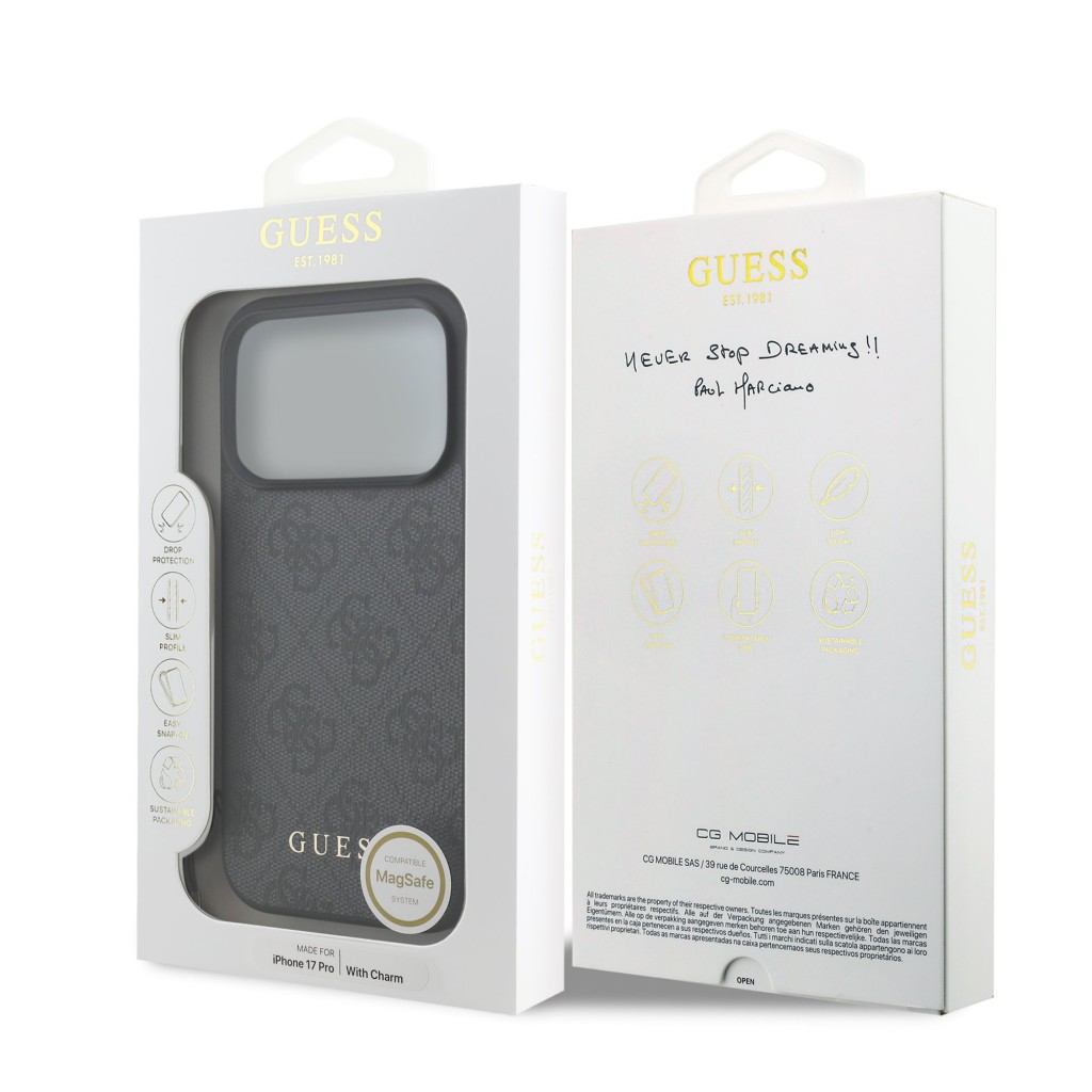 Zadní kryt Guess 4G Charm pro iPhone 17 Pro Tone on Tone GreyObjevte dokonalou kombinaci elegance a funkčnosti s prémiovým zadním krytem Guess 4G Charm pro váš iPhone 17 Pro. Tento stylový kryt, který se pyšní charakteristickým 4G vzorem, je ideálním doplňkem pro každého, kdo si potrpí na kvalitu a design. Zlaté logo GUESS dodává krytu nádech luxusu, který zaujme na první pohled.