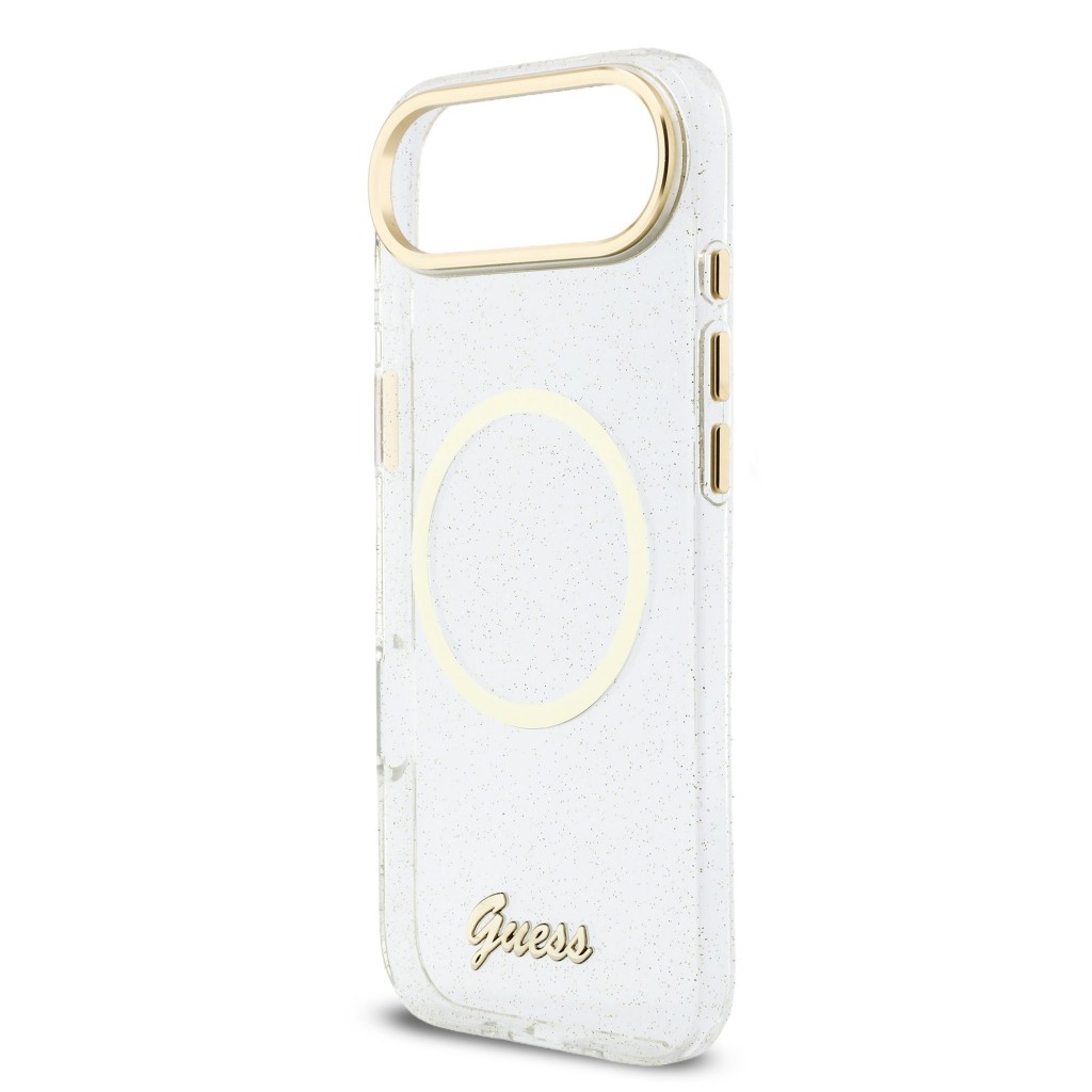 Zadní kryt Guess IML Glitter Script Strap MagSafe pro iPhone Air TransparentDopřejte svému iPhonu luxusní ochranu a styl s tímto jedinečným zadním krytem od prémiové značky Guess. Kryt je navržen tak, aby nejen dokonale chránil váš telefon před každodenním opotřebením, ale aby se zároveň stal nepřehlédnutelným módním doplňkem, který podtrhne váš osobitý styl.