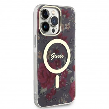Guess prémiový kryt vyrobený z kombinace pevného PC plastu na zadní straněm TPU měkkého plastu na bocích a vestavěným magnetem pro Apple MagSafe příslušenství.