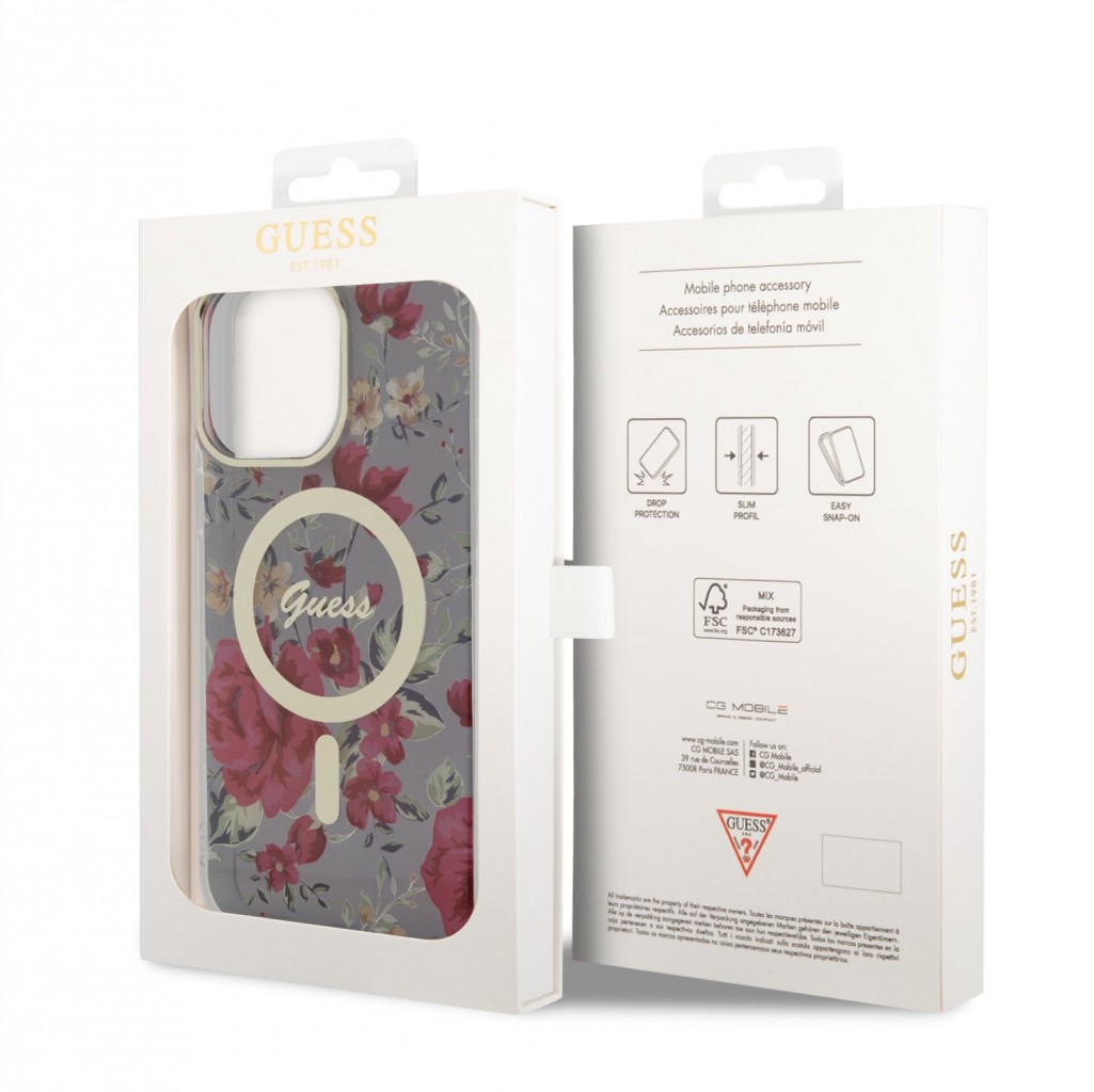 Zadní kryt Guess PC-TPU Flowers IML MagSafe na iPhone 13 Pro Max Kaki