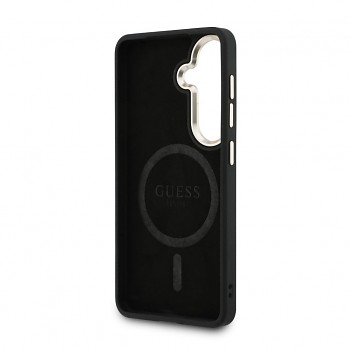 Design tohoto krytu je navržen s ohledem na milovníky luxusu a detailu. Povrch je potažen kvalitní PU umělou kůží, která věrně imituje texturu pravé kůže a dodává telefonu sofistikovaný vzhled. Celou plochu zdobí ikonický potisk s motivem 4G, který je pro značku Guess typický. Dominantním prvkem zadní strany je barevně sladěný magnetický kroužek, který je citlivě zakomponován do struktury krytu. V dolní části se nachází decentní, ale nepřehlédnutelné kovové logo Guess, které podtrhuje autenticitu a prémiovost produktu. Kryt zachovává štíhlou siluetu telefonu, takže zbytečně nezvětšuje jeho objem, přesto však poskytuje robustní pocit při držení.