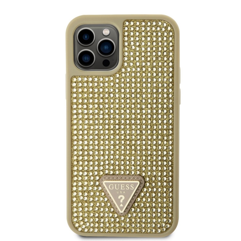 Zadní kryt Guess Rhinestones Triangle Metal Logo na iPhone 12 - 12 Pro zlatý