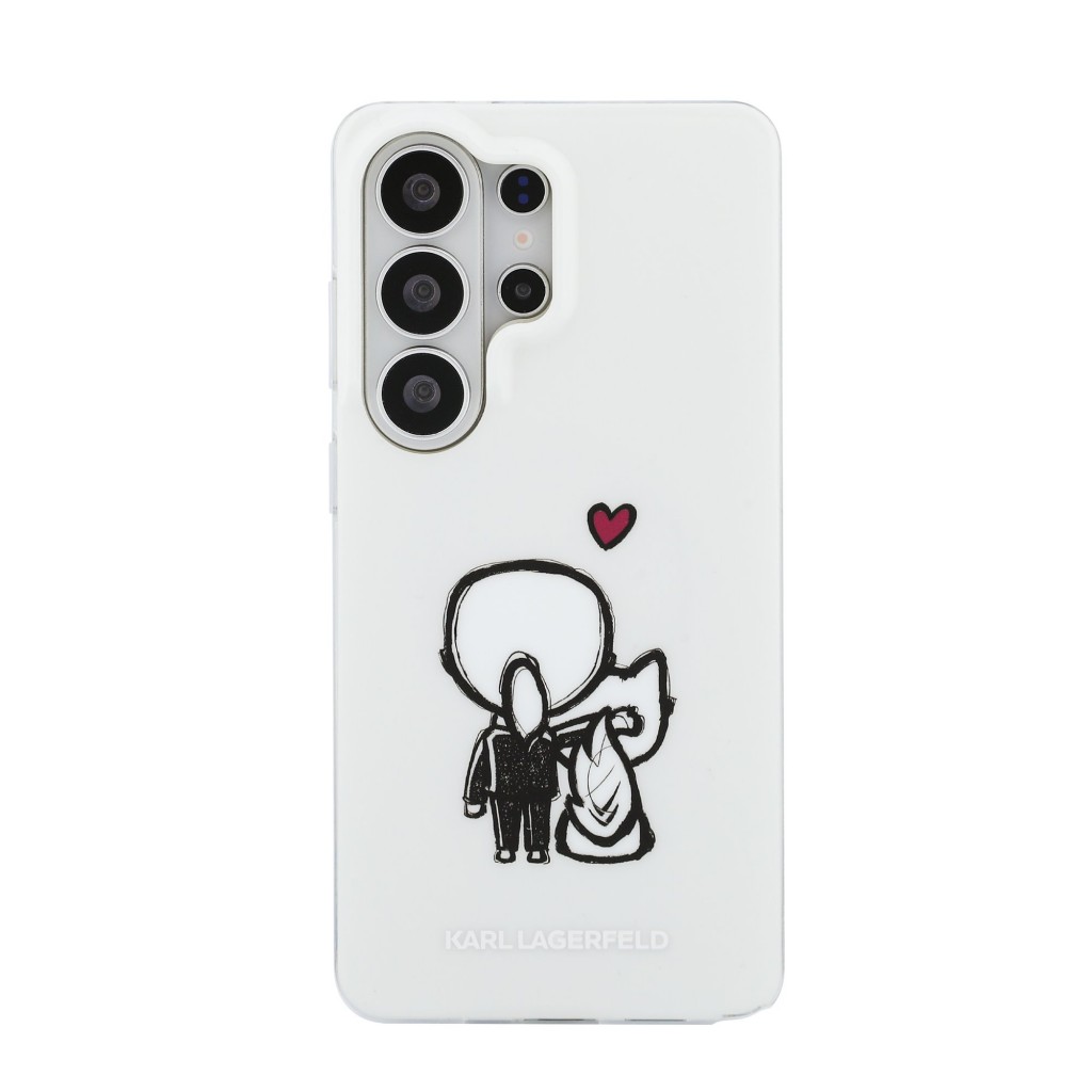 Design tohoto krytu je postaven na eleganci a moderních technologiích. Dominantním prvkem zadní strany jsou stylové siluety Karla Lagerfelda a jeho ikonické kočky Choupette, které jsou vyobrazeny ve spodní části. Celý motiv je chráněn technologií IML (In-Mold Labeling), což zajišťuje, že grafika zůstane barevně stálá a odolná proti oděru i po dlouhém používání. Konstrukce krytu využívá kombinaci dvou materiálů pro optimální vlastnosti. Zadní stěna je vyrobena z pevného polykarbonátu (PC), který dodává celku pevnost a odolnost proti nárazům. Boky jsou tvořeny měkkým a pružným termoplastickým polyuretanem (TPU), díky kterému se kryt velmi snadno nasazuje, dokonale obepíná křivky telefonu a skvěle tlumí případné pády. Černý matný povrch s jemnou texturou zajišťuje, že telefon v ruce neklouže a nezanechává zbytečné otisky prstů.