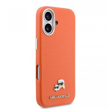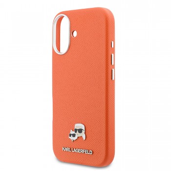 Zadní kryt Karl Lagerfeld PU Karl and Choupette Heads Pins MagSafe pro iPhone 17 oranžovýLuxusní stylový kryt s technologií uchycení příslušenství. Kryt obsahuje magnetický kroužek MagSafe optimalizující přesné umístění na bezdrátové nabíječky. Kromě vzhledu je jeho hlavní zbraní pevný a pružný rámeček pohlcující mechanické vibrace a hrubý povrch, který stabilizuje zařízení v dlani.