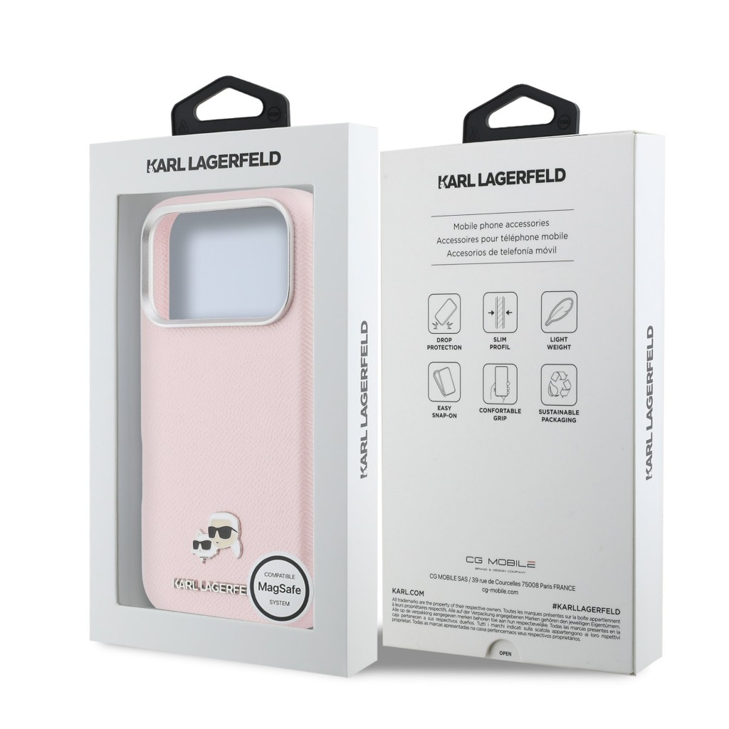 Zadní kryt Karl Lagerfeld PU Karl and Choupette Heads Pins MagSafe pro iPhone 17 Pro Max růžovýLuxusní stylový kryt s technologií uchycení příslušenství. Kryt obsahuje magnetický kroužek MagSafe optimalizující přesné umístění na bezdrátové nabíječky. Kromě vzhledu je jeho hlavní zbraní pevný a pružný rámeček pohlcující mechanické vibrace a hrubý povrch, který stabilizuje zařízení v dlani.