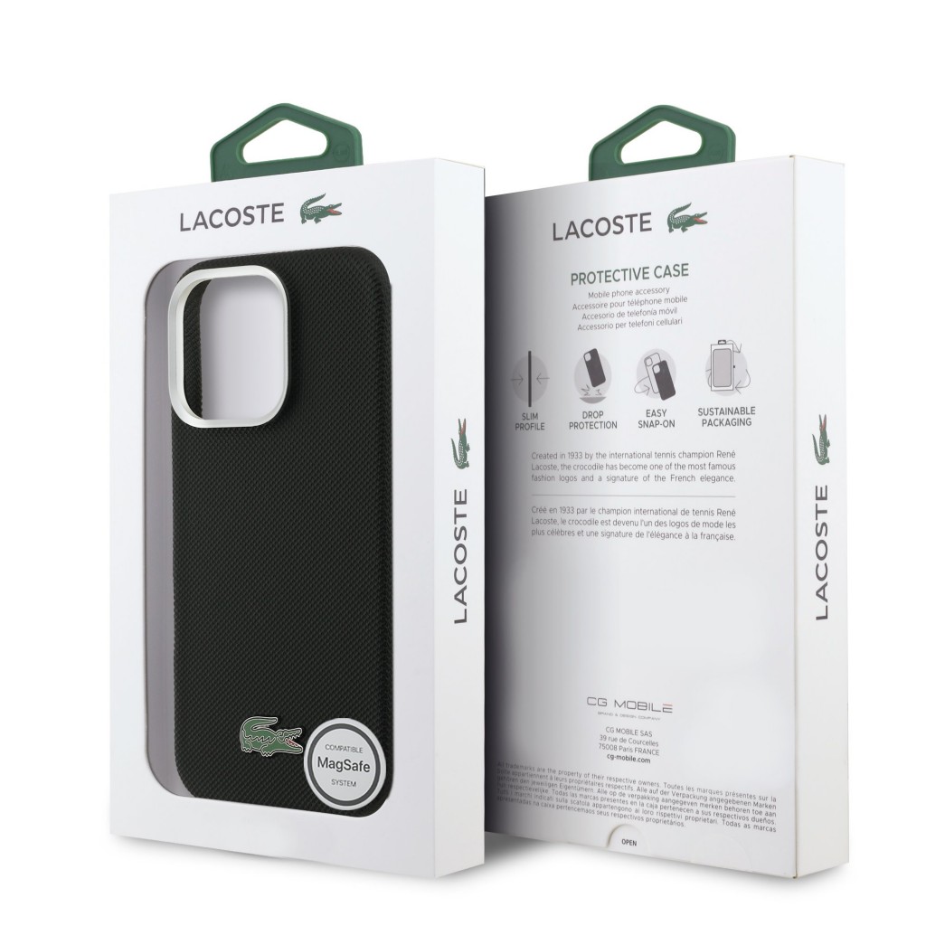 Zadní kryt Lacoste PVC Iconic Petit Pique Metal Logo MagSafe pro iPhone 16 Pro černýZískejte dokonalé spojení vysoké módy a moderní technologie. Tento zadní kryt od prestižní značky Lacoste je navržen pro ty, kteří vyžadují nejen spolehlivou ochranu svého telefonu, ale také stylový doplněk, který podtrhne jejich osobnost. Kryt je lehký, elegantní a plně funkční pro každodenní používání.