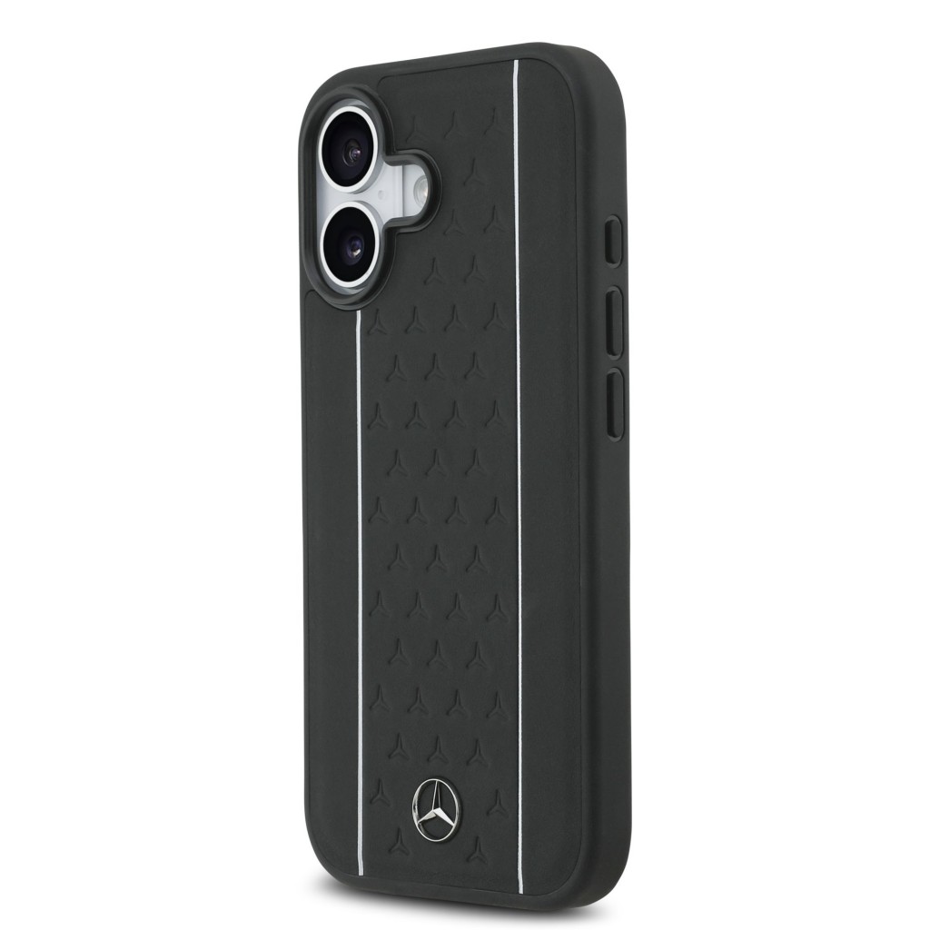 Design krytu je inspirován interiéry a sportovní estetikou vozů Mercedes-Benz. Povrch je potažen kvalitní kůží, která dodává telefonu luxusní texturu. Dominantním vizuálním prvkem je sofistikovaný vzor tvořený drobnými hvězdičkami, které jsou precizně vyraženy do koženého podkladu. Tento vzor je elegantně doplněn dvěma svislými pruhy, které krytu dodávají moderní a dynamický vzhled. V dolní části krytu se nachází decentní, ale nepřehlédnutelné kovové logo Mercedes-Benz, které podtrhuje autenticitu a prémiovost celého produktu. Celková konstrukce je navržena v slim provedení, což znamená, že kryt přesně kopíruje křivky telefonu a zachovává jeho elegantní profil, aniž by mu přidával na zbytečném objemu.
