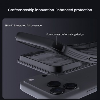 Kryt Nillkin CamShield PRO Magnetic se pyšní inovativním posuvným krytem čočky fotoaparátu, který nejen chrání objektiv, ale také dodává vašemu telefonu stylový vzhled. Záda krytu jsou vyrobena z pevného a odolného plastu, zatímco rámeček je z měkčeného TPU plastu, což zajišťuje vynikající ochranu okrajů a rohů telefonu.